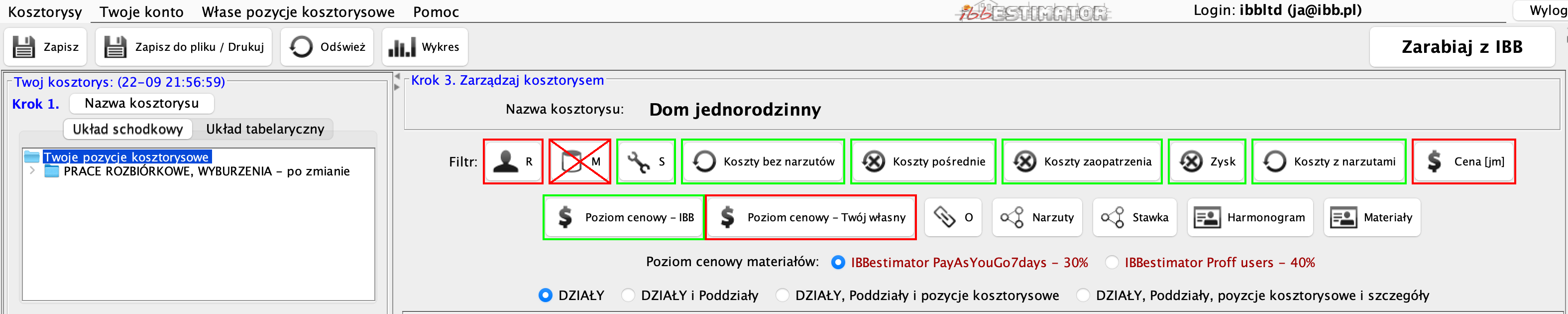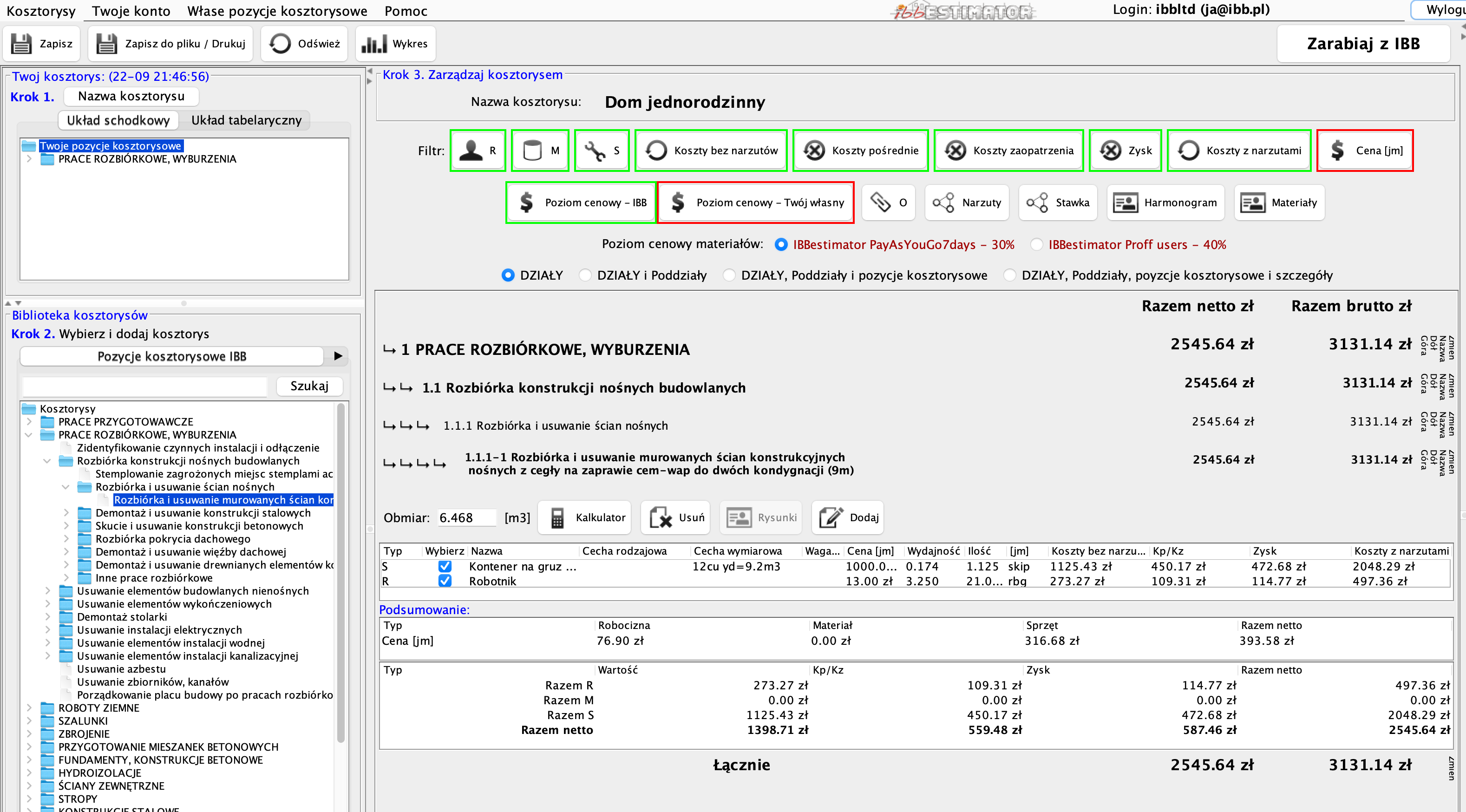 Biblioteka IBB pozwala na wybór poszczególnych pozycji jednostkowo lub z grupowo dzięki kosztorysom złożonym